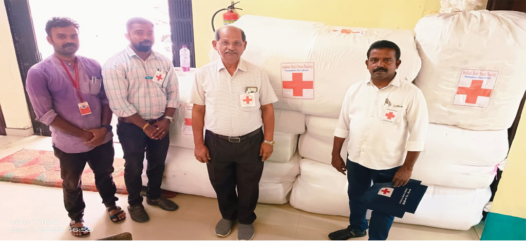 On 07.12.2023, under the leadership of Kanniyakumari District Red Cross Society Chairman Rtn. Dr. N.S. Kumaradhas, relief materials were sent to areas affected by Cyclone Michaung in Chennai on behalf of the Indian Red Cross Society, Kanniyakumari District Branch, through the District Collector’s Office. Mr. K. Sethu Ramalingam, District Red Cross Vice President and Nagercoil Revenue Commissioner, Managing Committe Members and Red Cross Life Members participated in this event.